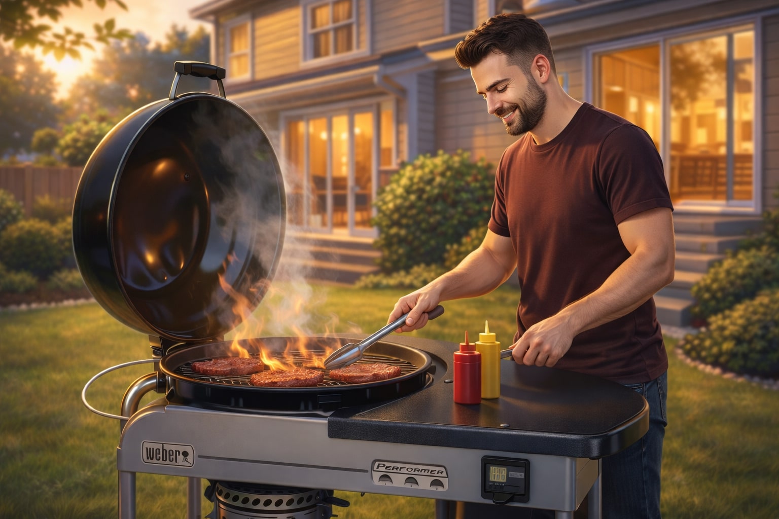 - Weber Performer Premium GBS 57 см – поєднання класичного вугільного гриля та зручного столика, стабільна температура, велика робоча зона.